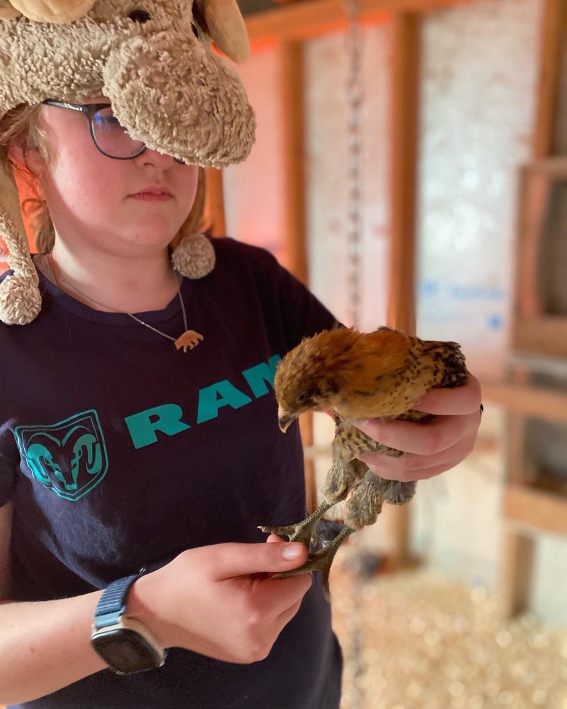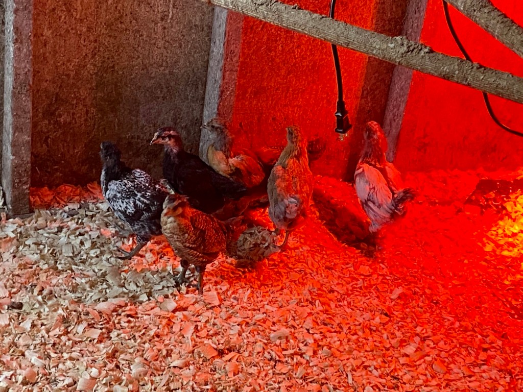 Our little chicks aren’t so little any more. They are losing their downy fluff and getting their adult feathers. They have found their voices and can be very stinky. Their personalities are starting to show….Emma is mischevious, Cora is timid, Louise is a loudmouth, and Princess Layer is a trouble maker. They have grown big enough they got to make the big move to the chicken coop this week. They are thrilled to have more room to roam and a place to perch.