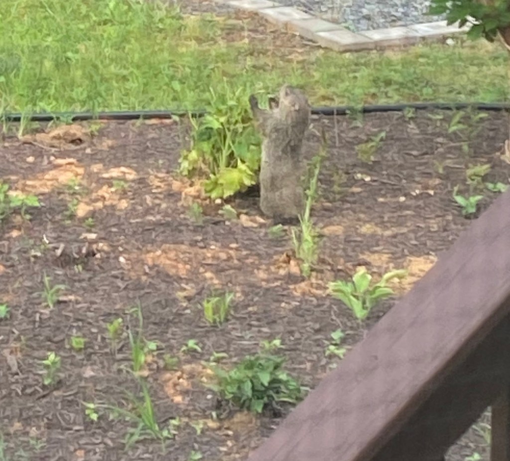 New perennials in the flower beds, garden growing like crazy, 12 happy growing chickens…we were feeling pretty good about how well we were doing. We were growing things, keeping the wilds from eating what we were growing, and keeping all the animals thriving. This week was a reality check! We caught one of our now 5!! Groundhogs with arms wrapped around the perennials munching away. I don’t know if the delphinums will survive her snacking. The deer snuck over the fencing and ate all the green beans. And we think that cute faced fox ate Henrietta the chicken. The animals took this round…but we plan to win the next!