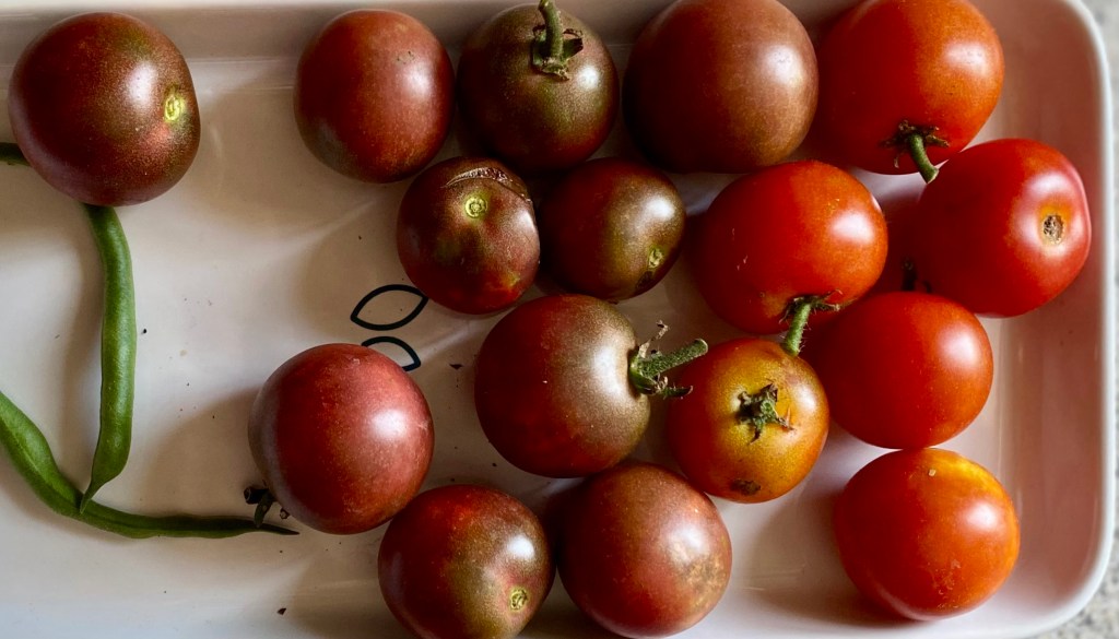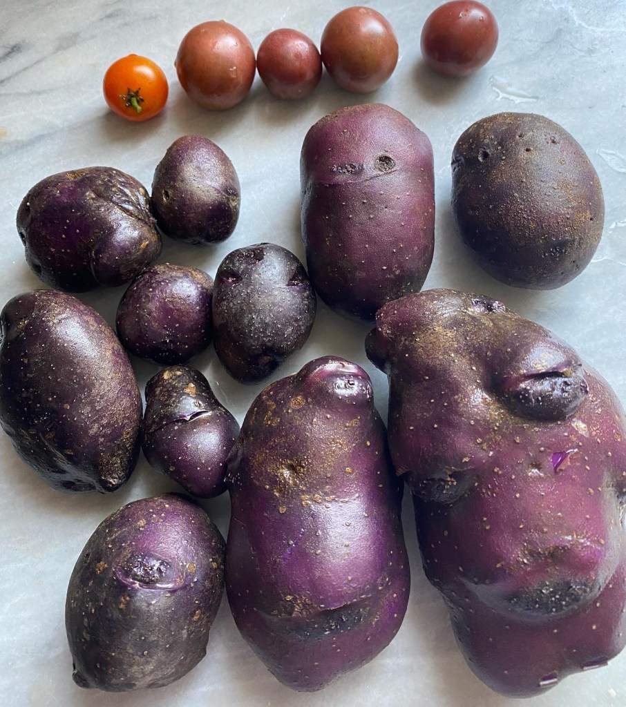 It’s been a fun couple of days in the garden. We were able to dig up the first of our potatoes and pick the first cherry tomatoes. The potatoes aren’t russets, but I think Dad would be pleased!