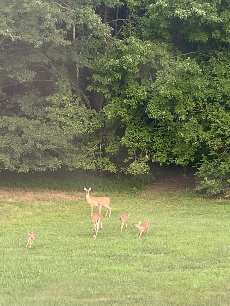 They may like my garden, but it is also pretty spectacular to look out the kitchen window and see a small herd of deer…especially the playful little babies.