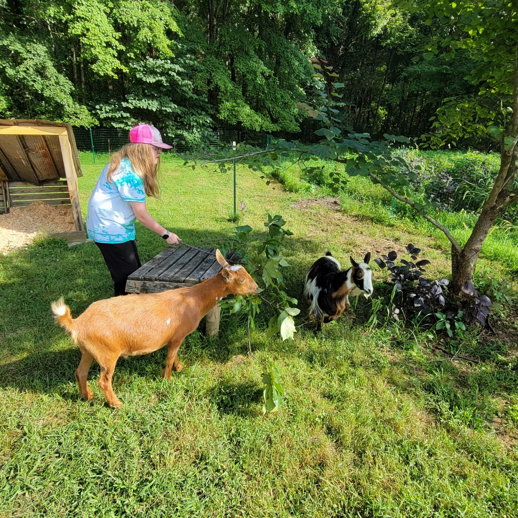 Meet the newest residents of Grawly Bear Farm. Scott and the kids picked them up this morning. The goats are settling in well and already love Farm Girl. They lay near the gate just waiting for her to return. Farm Girl is in Heaven!