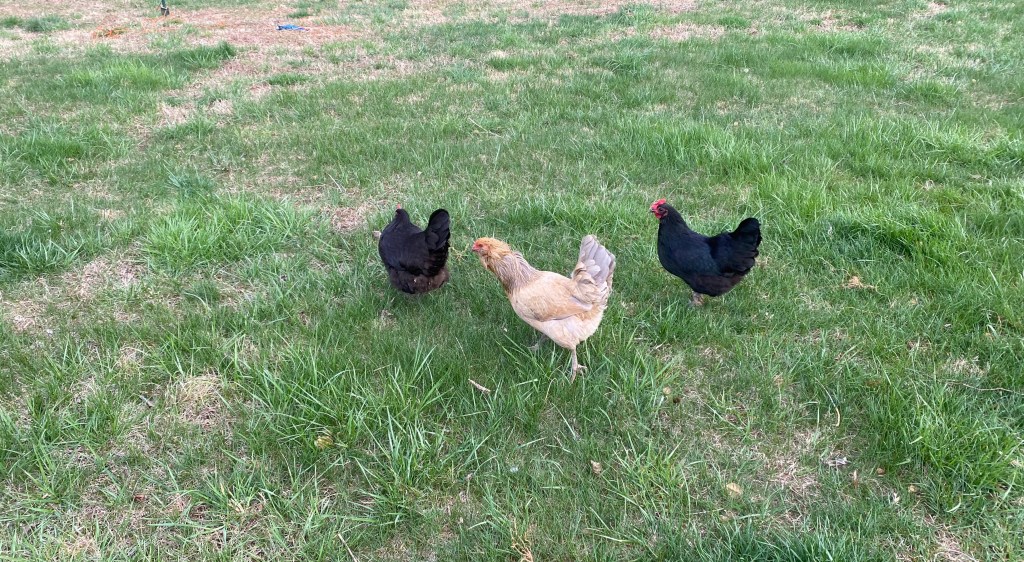 Despite note needing any more chicks, we ended up with 3 more. They are growing quickly and have reached their weird dinosaur looking phase. Our other chickens are loving warmer weather and free ranging. They start calling to be let out about 7am and Louise is always the ringleader.