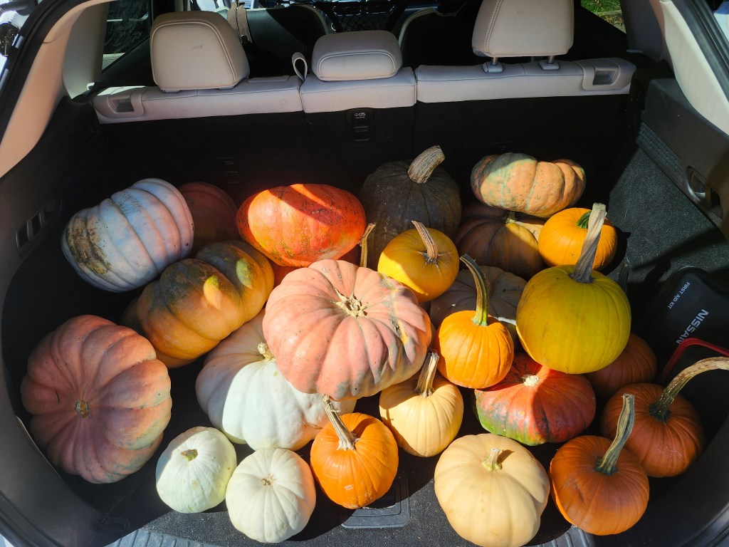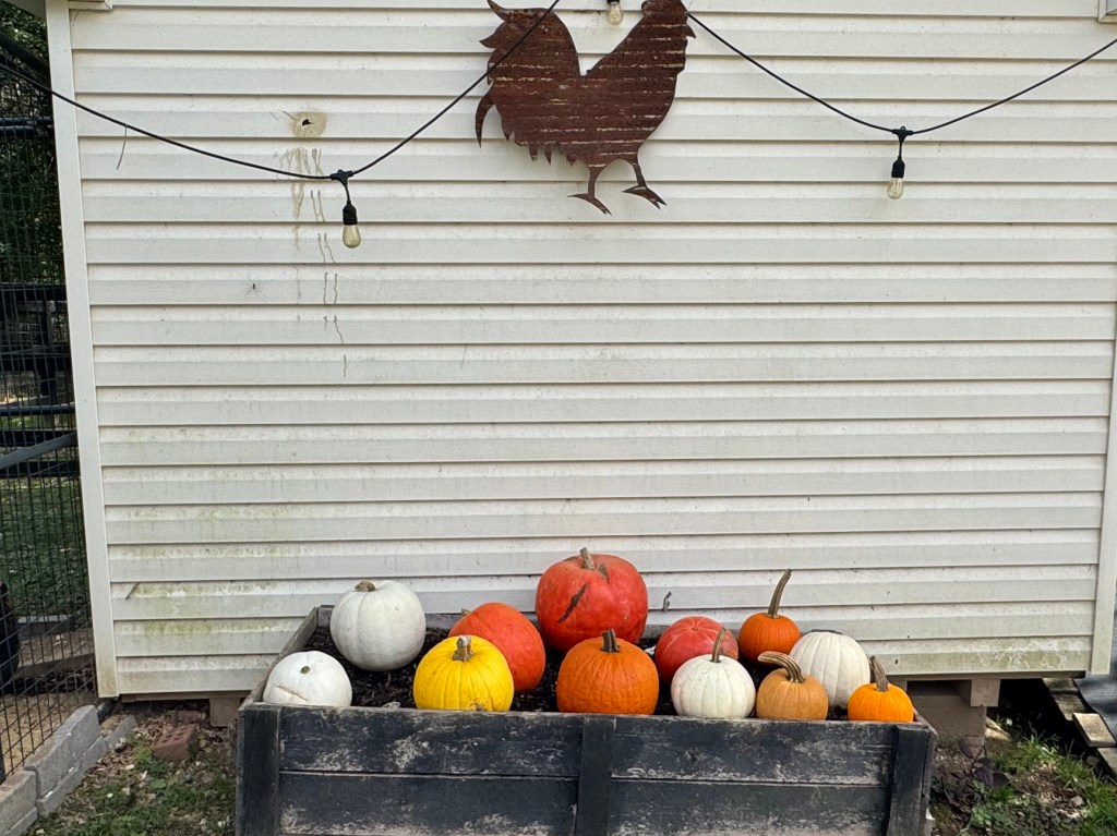 A local nursery had a deal this year that you could get all the pumpkins you could fit in a wagon for a set price. The only catch is, you have to pull the wagon up a pretty good hill to pay for the pumpkins. Farm Girl took the challenge very seriously and we ended up with 29 pumpkins in our wagon. We had a great time decorating the farm with all the pumpkins.